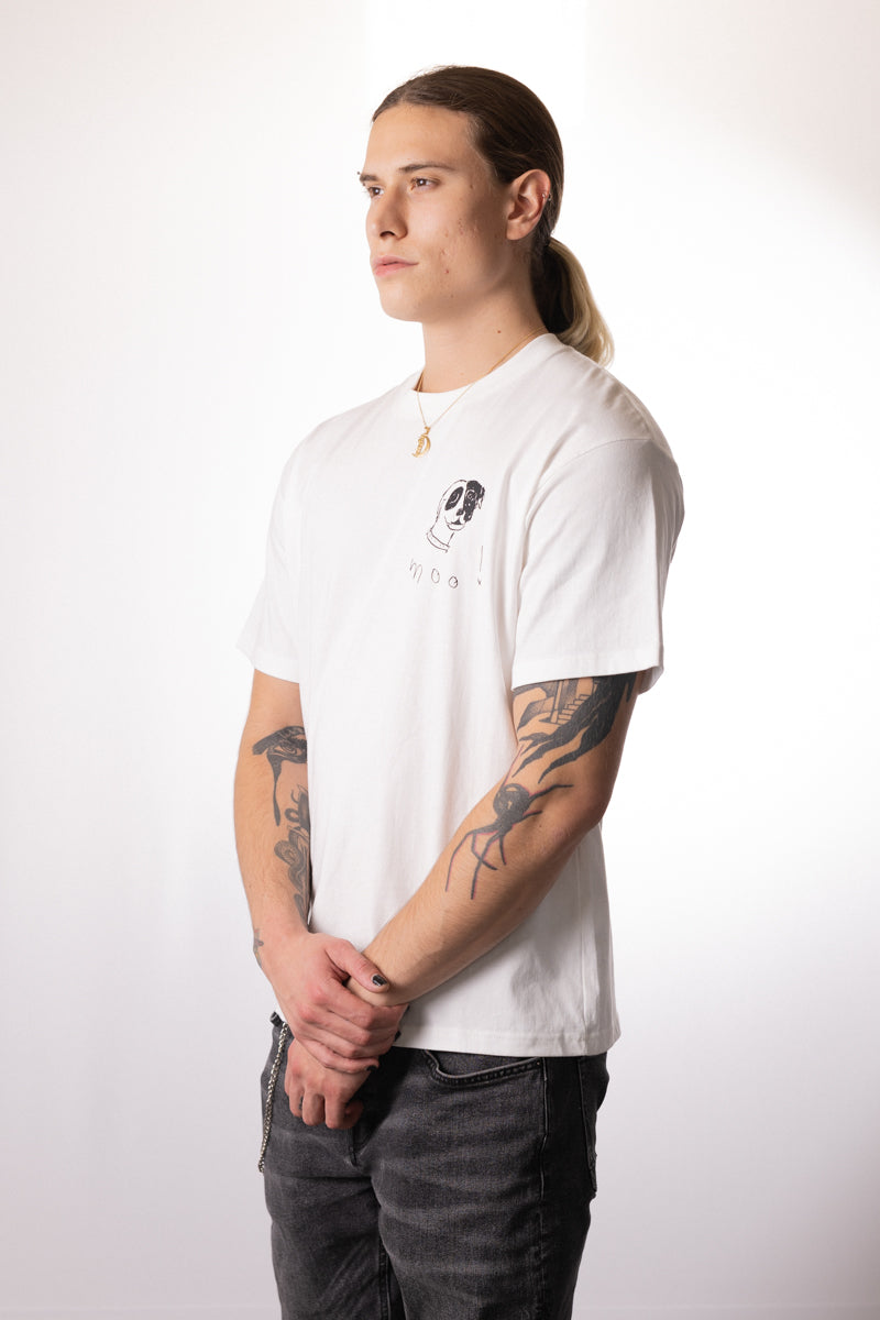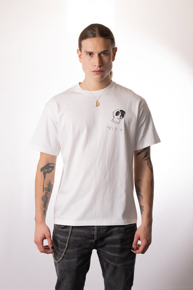 This Moo T-shirt features a print of Johnny Depp's beloved dog, Moo. Moo was an important figure and companion in Depp's life. This design pays tribute to Moo and represents the bond and love Depp had for his beloved pet.