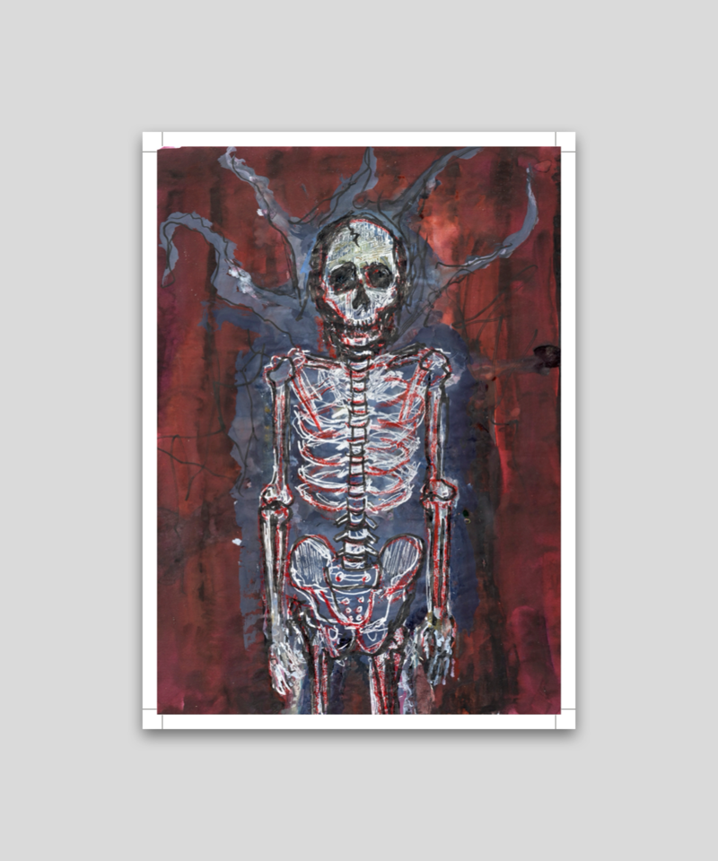 This is one of Johnny Depp's dark skeletal works, with energetic scratchy lines bringing vividness to the eerie subject matter. Based on a Johnny Depp film of unknown date.