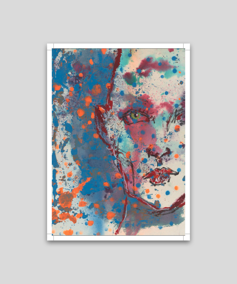 鮮やかで大胆なこの「エブリマン」作品は、ジョニー・デップの色彩感覚の卓越性と生命力に満ちたエネルギーを体現しています。印象的なシンプルさの中にも、彼の才能を遺憾無く発揮しています。2024年のジョニー・デップの作品を基にしています。